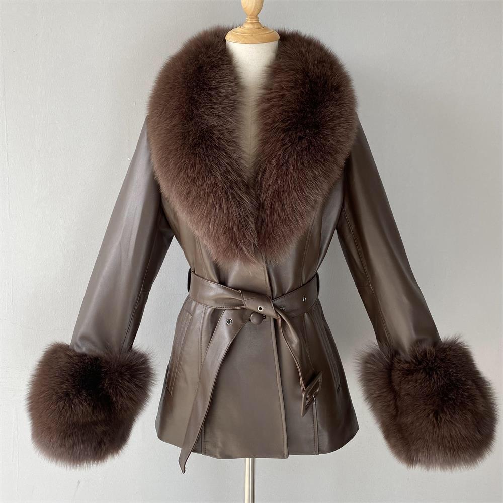 100% Premium Leather, 100% Fox Fur Collar & Cuffs
